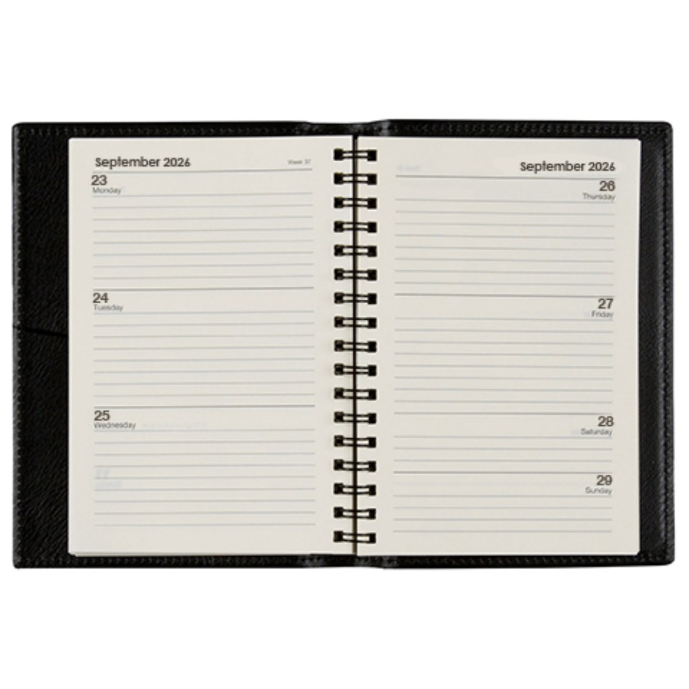 Includes a ribbon bookmarker to mark significant dates, events, or entries within the diary.