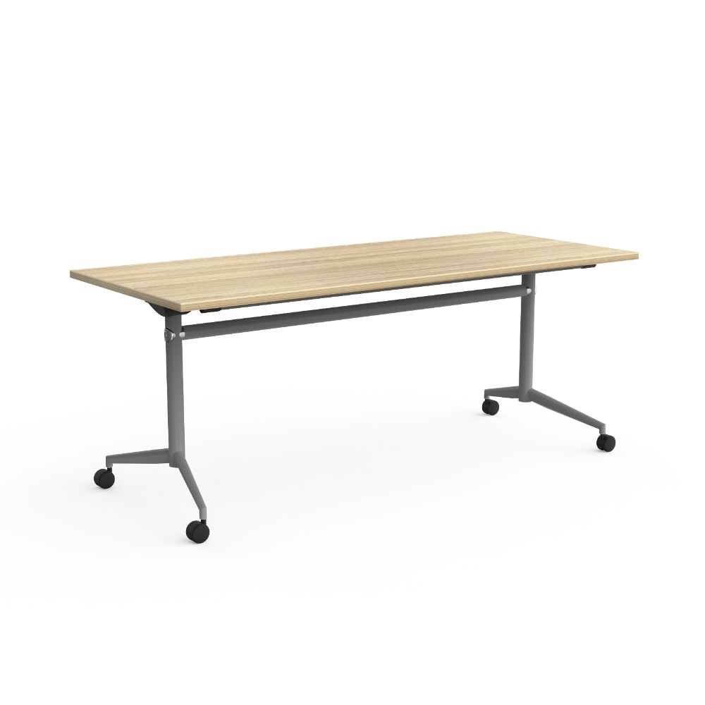 OLG Uni Flip Table 1200W x 600D x 720mmH Silver Frame New Oak Top