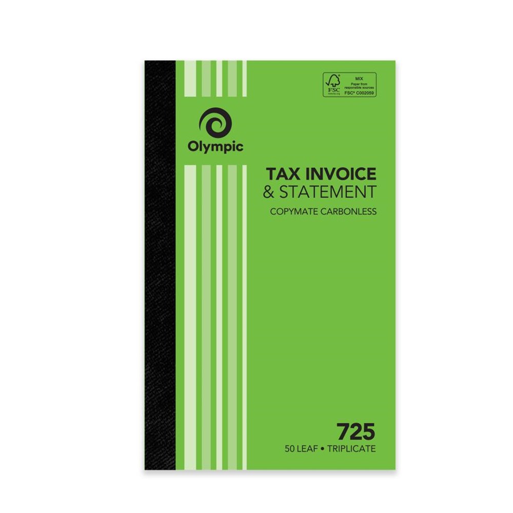 Olympic 725 Tax Invoice & Statement Book Triplicate 200x125mm Carbonless 50 Leaf