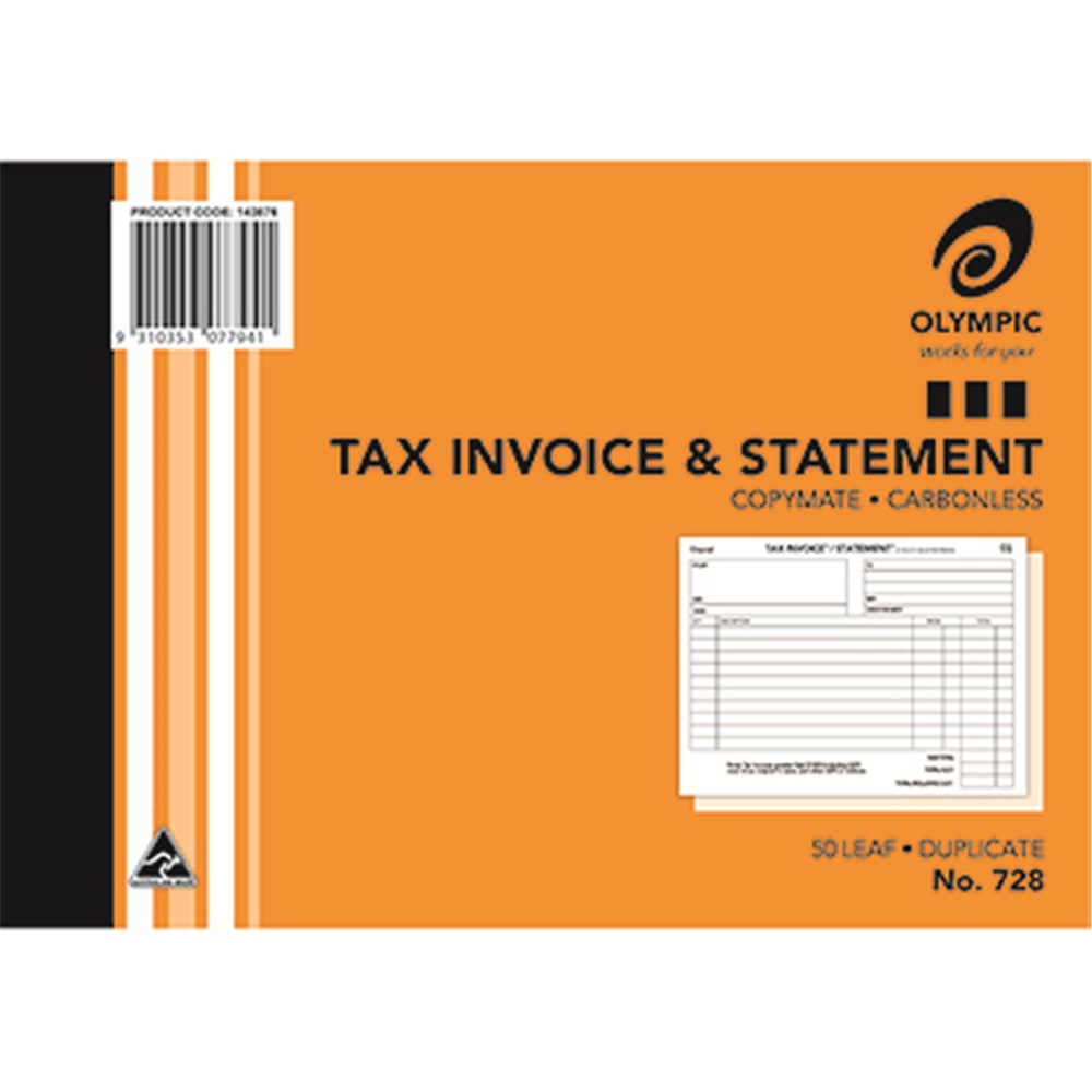 Olympic 724 Tax Invoice & Statement Book Duplicate 200x125mm Carbonless 50 Leaf