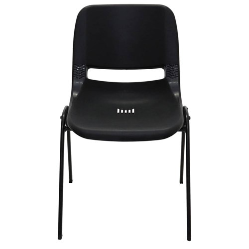 Strong durable stacking chair with polypropylene shell and black powder coated underframe.