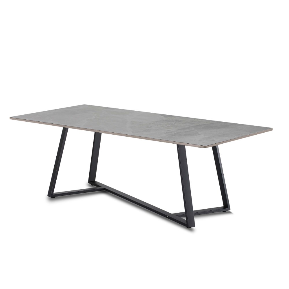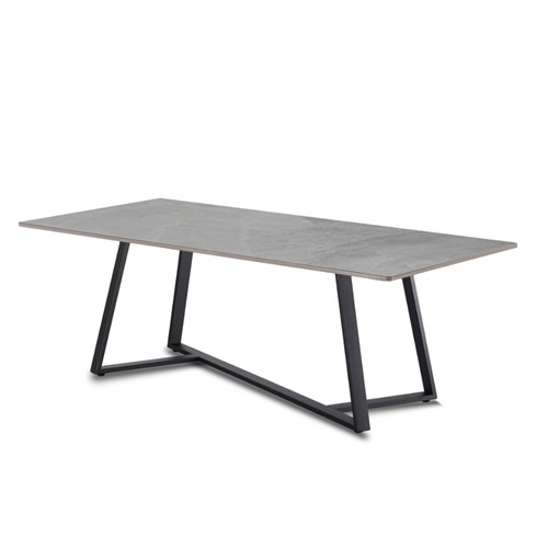 Supported by a robust black powder-coated steel frame, this table provides a sturdy and elegant foundation.