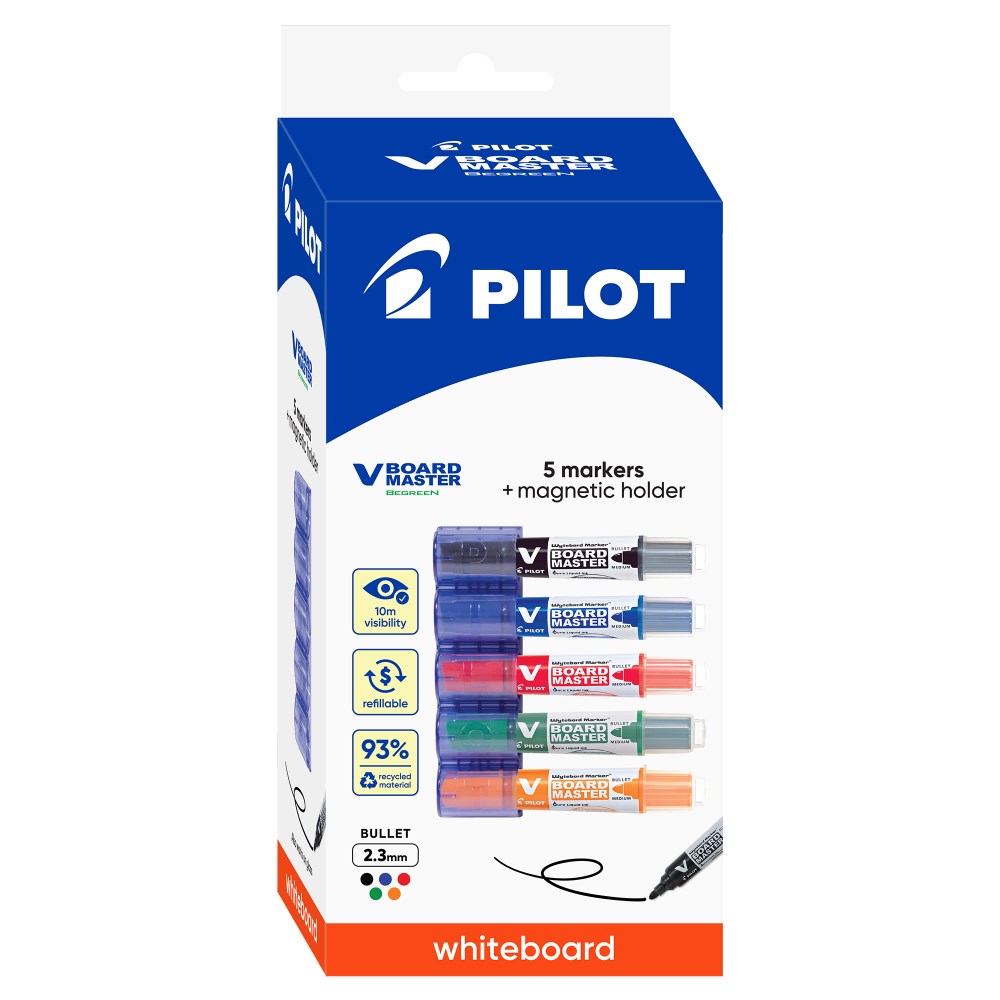 Pilot V Board Master Begreen Whiteboard Marker Bullet 2mm Magnetic Holder Pack of 5