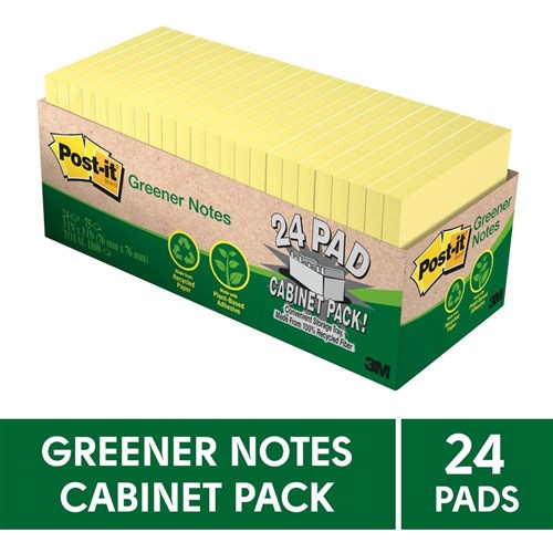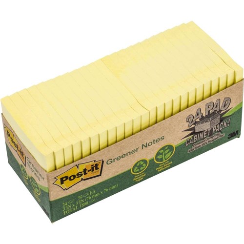 Post-It 654R-24CP-CY Greener Note Cabinet Pack 76x76mm Recycled Yellow Pack of 24