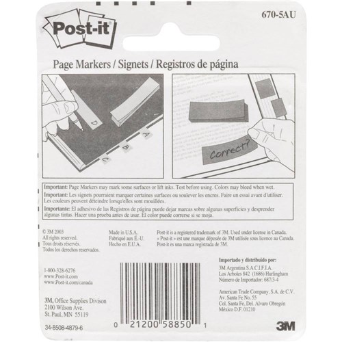 Post-It 670-5AU Page Markers 12x44mm Jaipur Assorted 100 Sheet Pad Pack of 5
