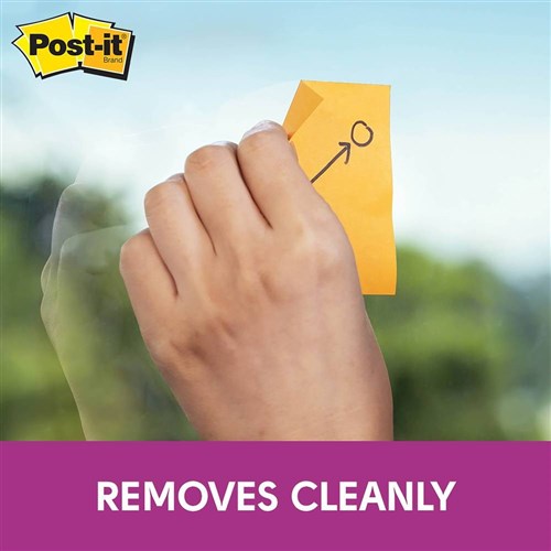 Super Sticky Post-it® adhesive ensures that notes stick practically anywhere such as computer monitors, filing cabinets & furniture, and remain as easily removable as original Post-it® Notes.