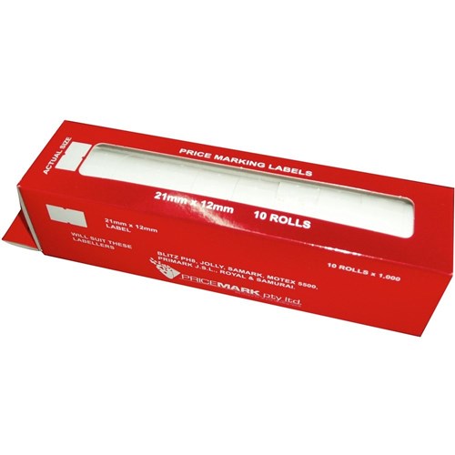 Pricing Gun Labels Permanent White 21x12mm Pack of 10