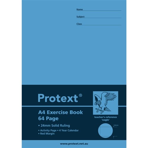 Protext Premium Exercise Book A4 24mm Solid Ruled 64 Pages