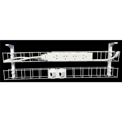Rapid Cable Management Dual Basket 650mm 4GPO+2Data+1.5m Interconnecting Lead Black