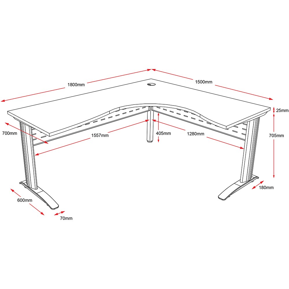 One piece corner workstation with 25mm top.