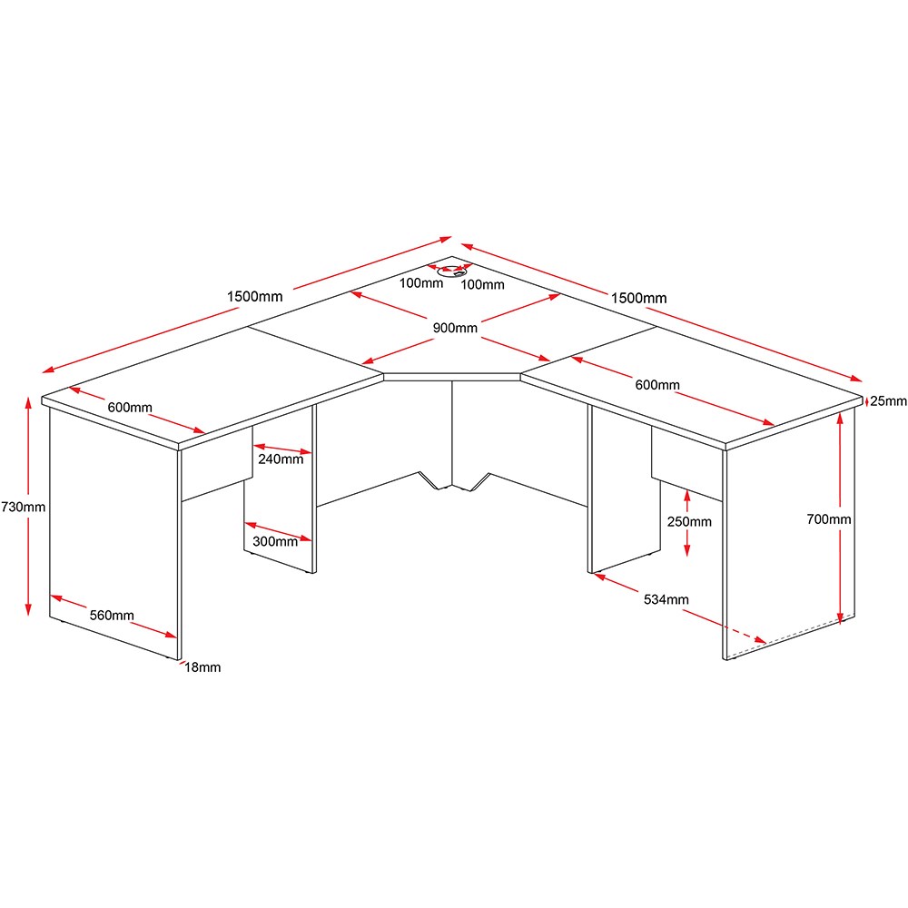 Rapid Worker Corner Desk Workstation 1500mm x 1500mm x600mm D White & Ironstone