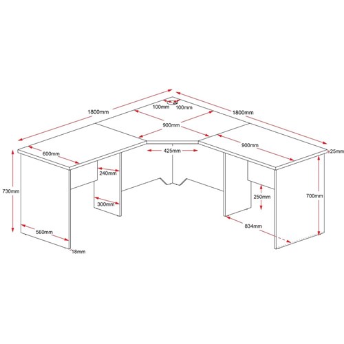Rapid Worker Corner Desk Workstation 1800mm x 1800mm x 600mm Cherry & Ironstone