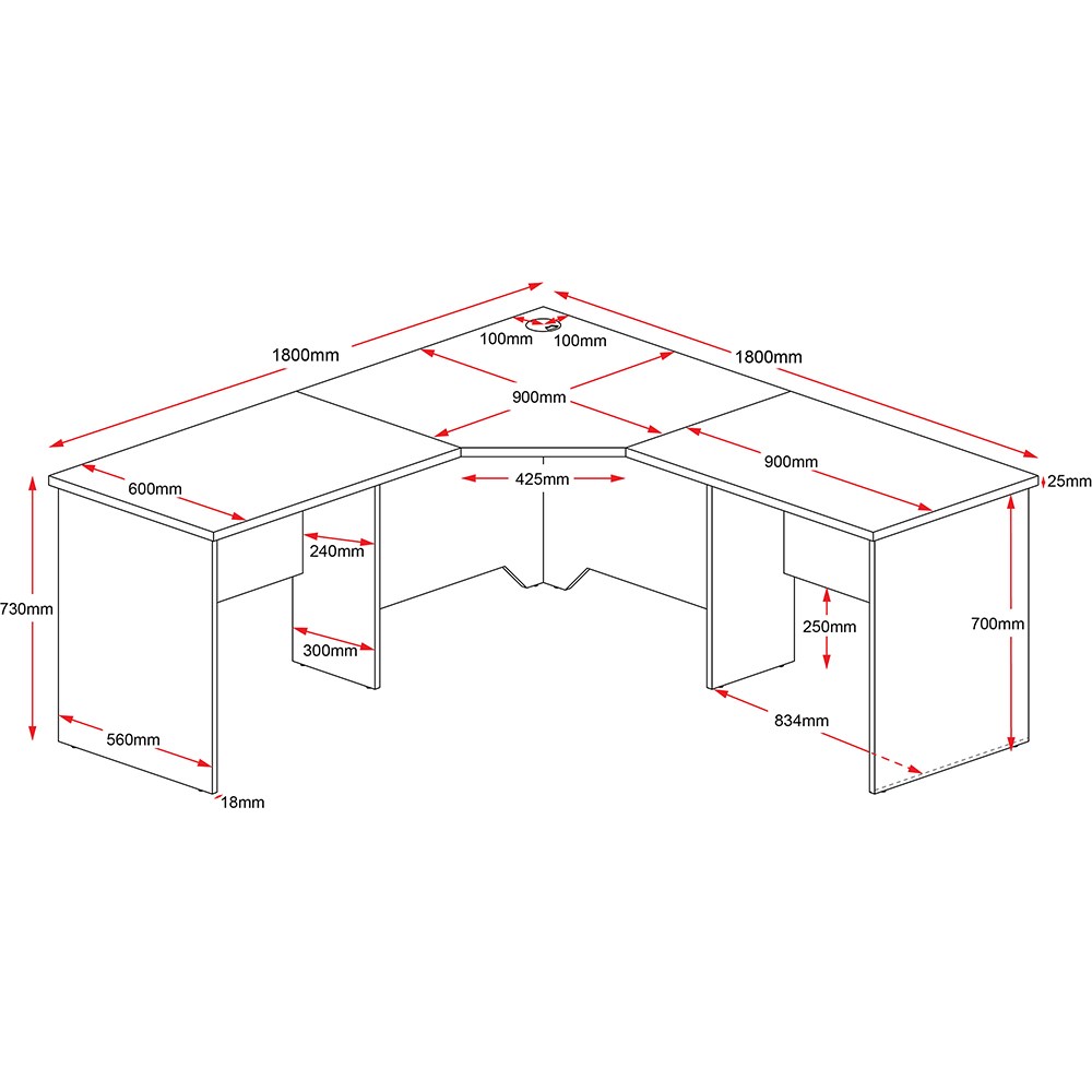 Rapid Worker Corner Desk Workstation 1800mm x 1800mm x 600mm Cherry & Ironstone