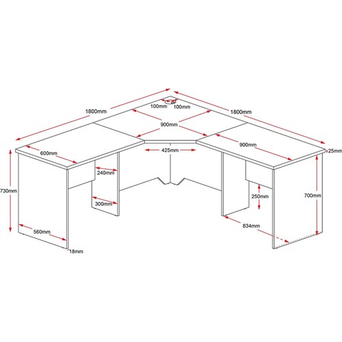 Rapid Worker Corner Desk Workstation 1800mm x 1800mm x 600mm Cherry & Ironstone