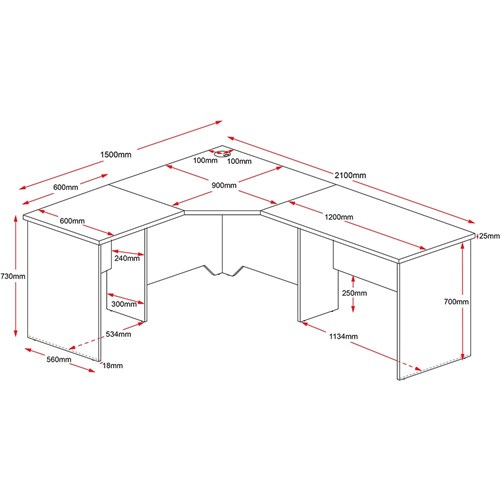 Rapid Worker Corner Desk Workstation 2100mm x 1500mm x600mm D Cherry & Ironstone