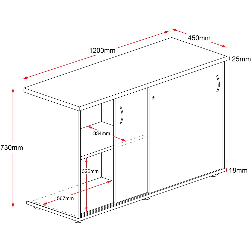 Rapid Worker Credenza Sliding Doors 1200W x 450D Cherry & Ironstone