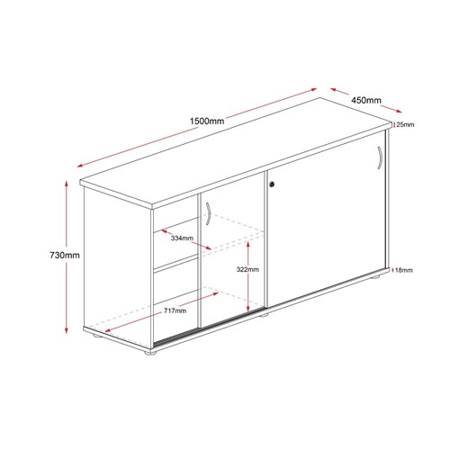 Rapid Worker Credenza Sliding Doors 1500W x 450D Cherry & Ironstone