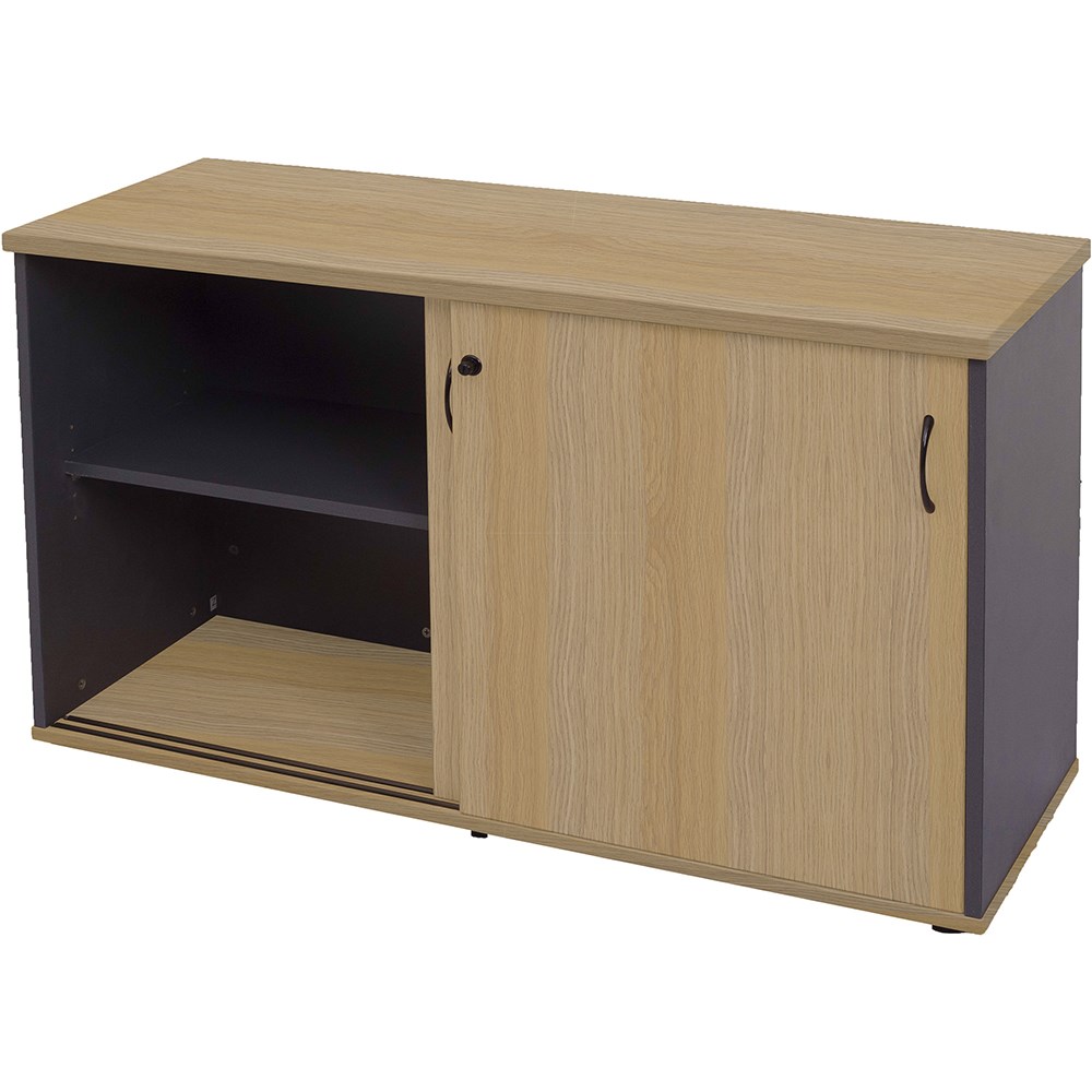 Rapid Worker Credenza Sliding Doors 1500W x 450D Natural Oak & Ironstone