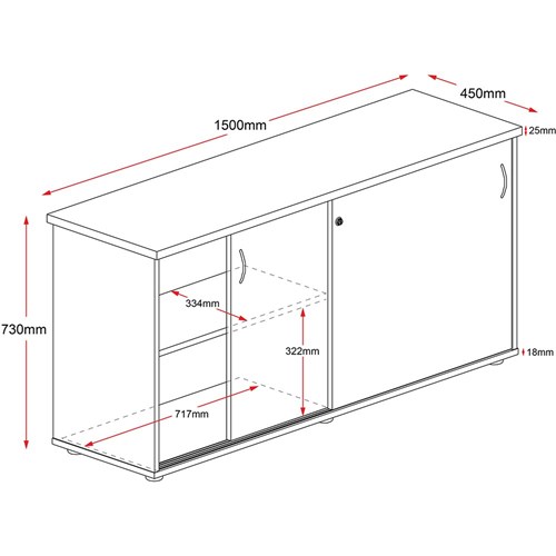 Rapid Worker Credenza Sliding Doors 1500W x 450D Cherry & Ironstone