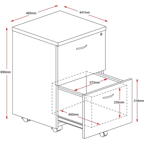 Rapid Worker Mobile Pedestal 2 Filing Drawers Ironstone