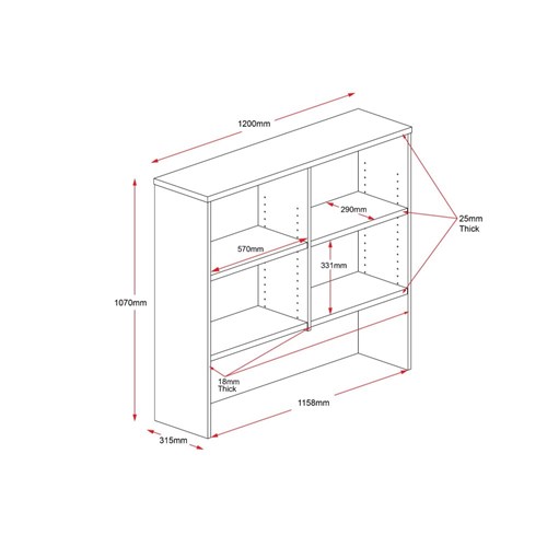 Rapid Worker Overhead Hutch 4 Shelves 1200mmW Cherry & Ironstone