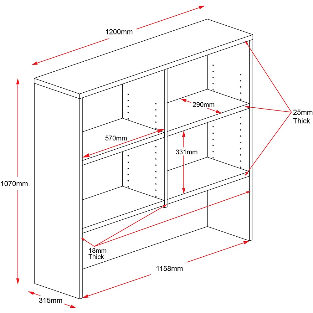 Rapid Worker Overhead Hutch 4 Shelves 1200mmW Beech & Ironstone
