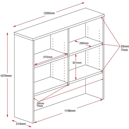 Rapid Worker Overhead Hutch 4 Shelves 1200mmW Cherry & Ironstone