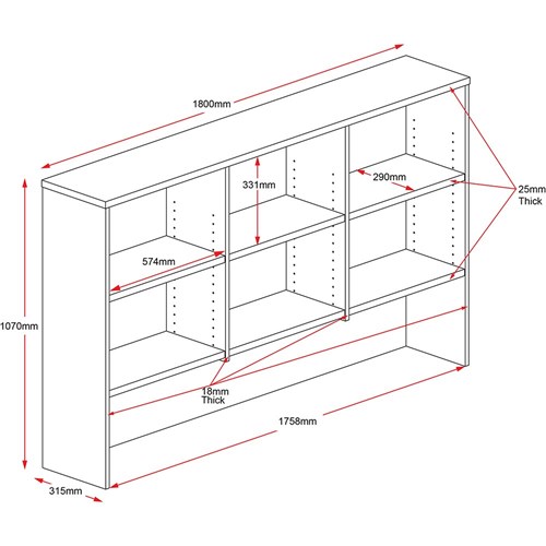 Rapid Worker Overhead Hutch 6 Shelves 1800mmW Cherry & Ironstone