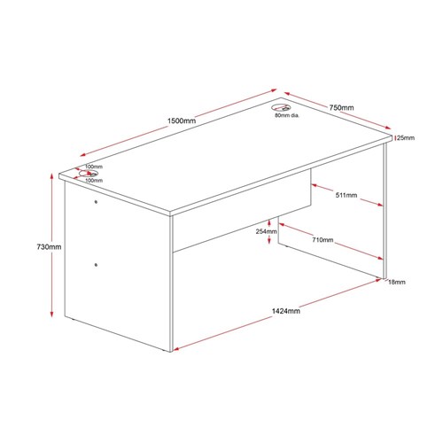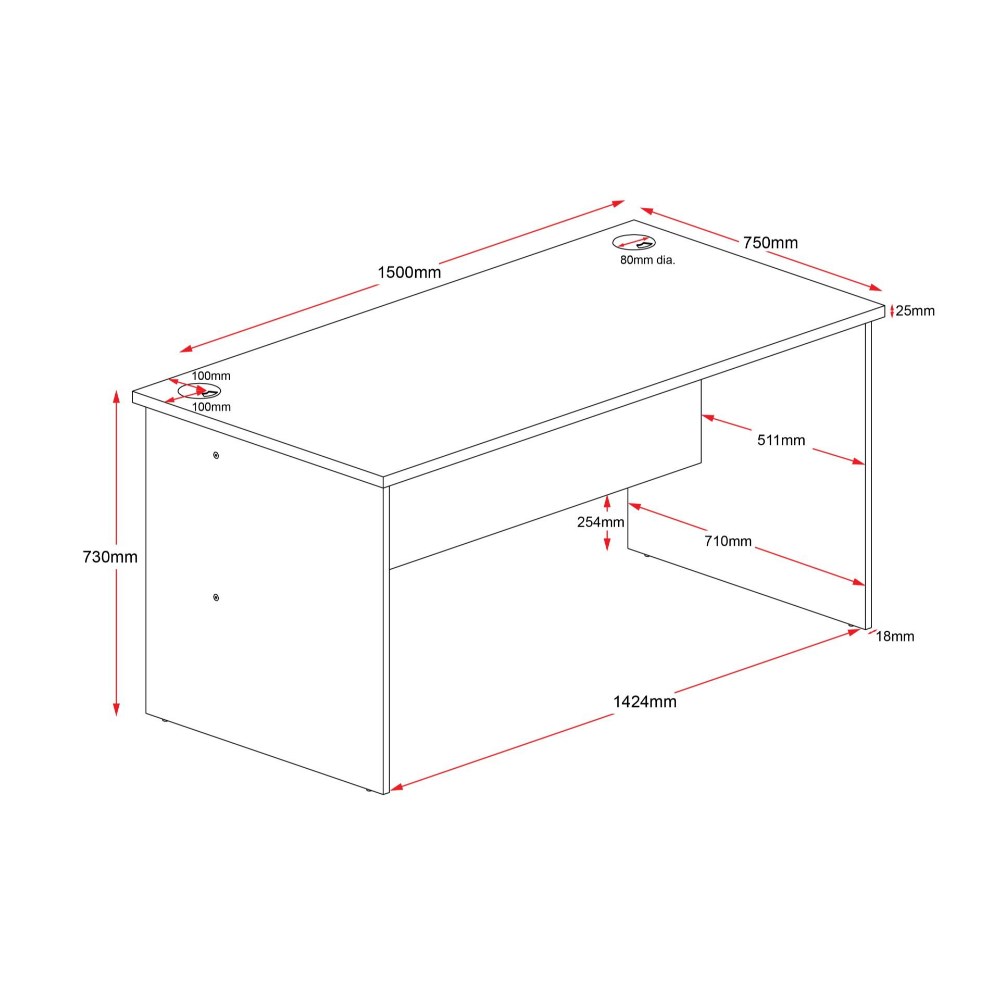 Rapid Worker Straight Desk 1500mm x 750mm Cherry & Ironstone