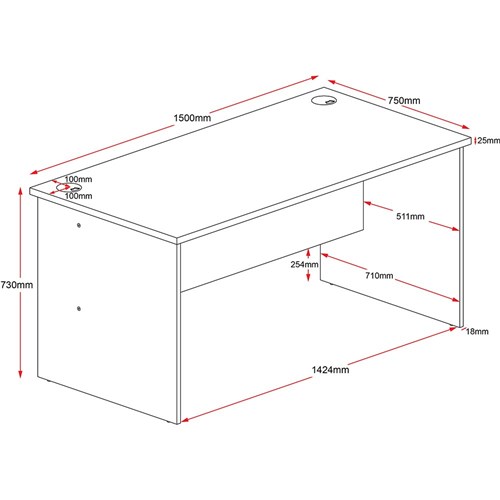 Rapid Worker Straight Desk 1500mm x 750mm Cherry & Ironstone