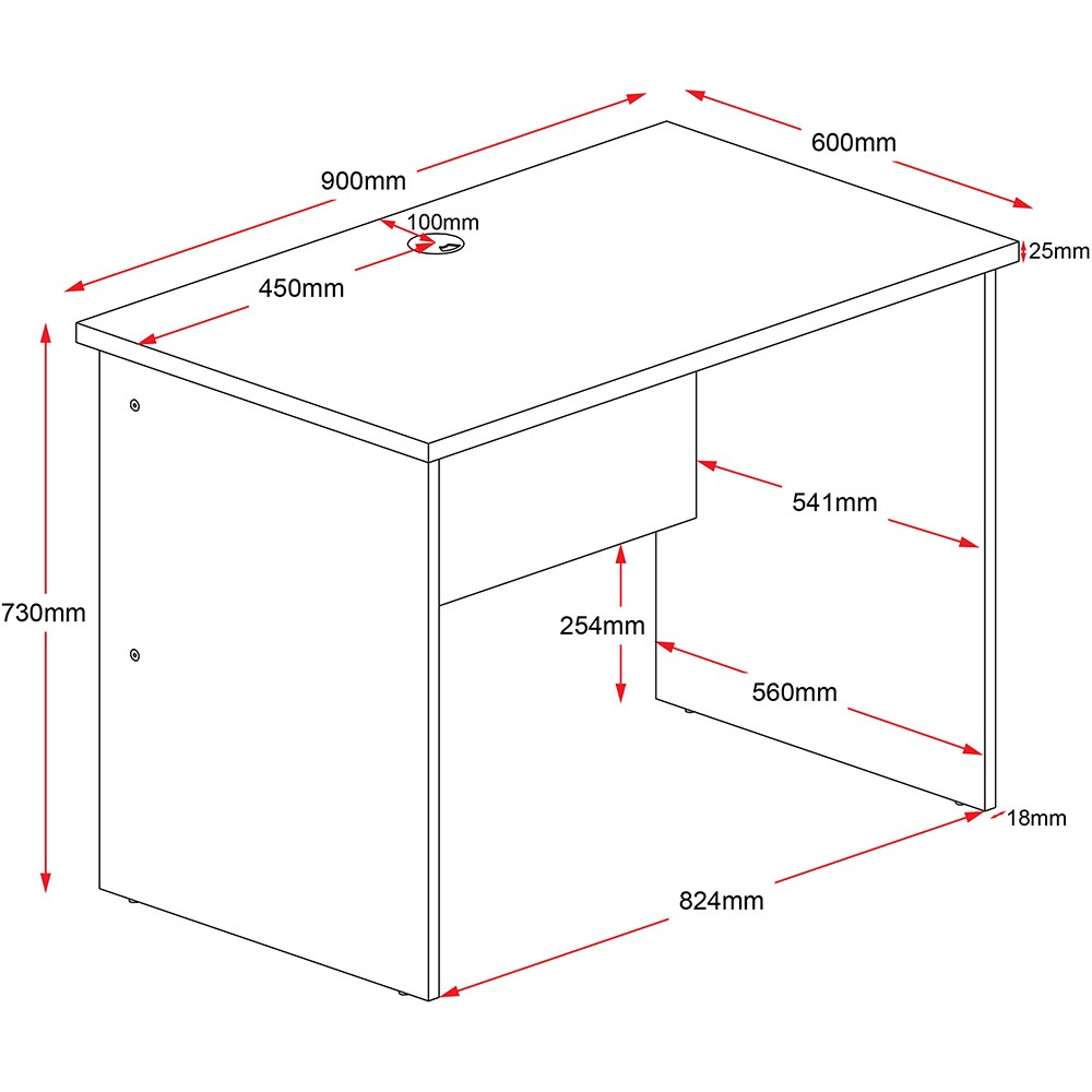 Rapid Worker Desk 900W x 600D x 730mmH Cherry & Ironstone