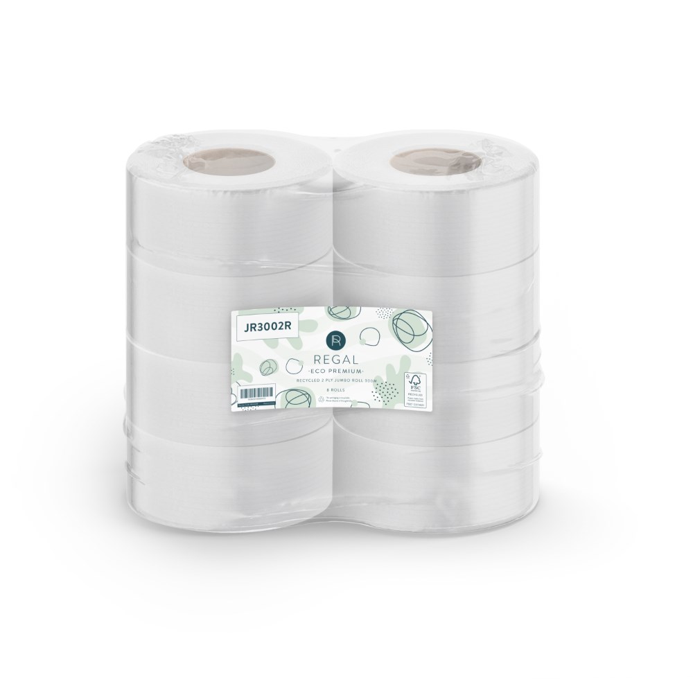 Regal Eco Premium Recycled Jumbo Toilet Paper Rolls 2 Ply 300m Pack of 8