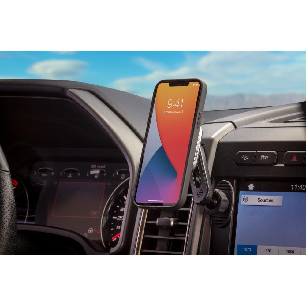 Non-MagSafe phones, including Android and iPhone X-11, attach using included MagicPlate.