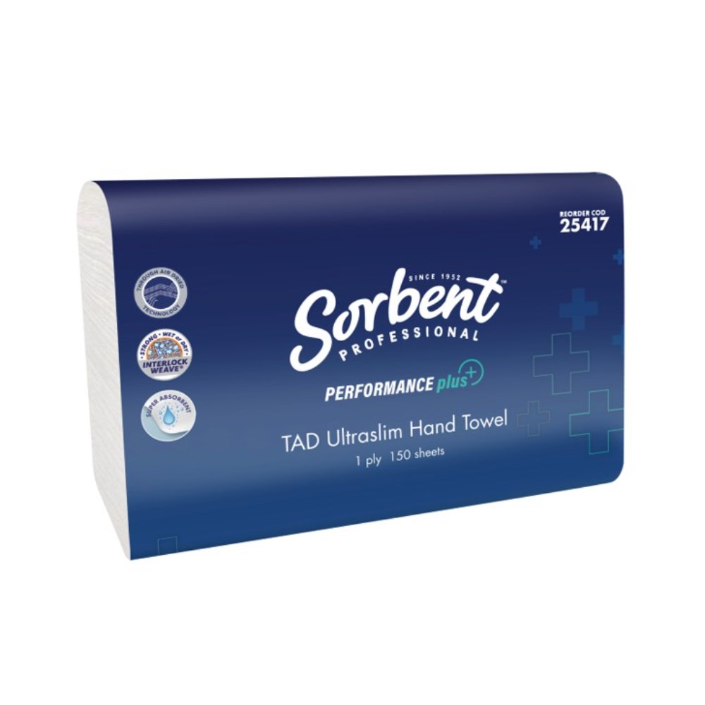 Sorbent Pro Performance Plus TAD Ultraslim Hand Towel 1 Ply 150 Sheets Carton Of 16