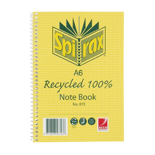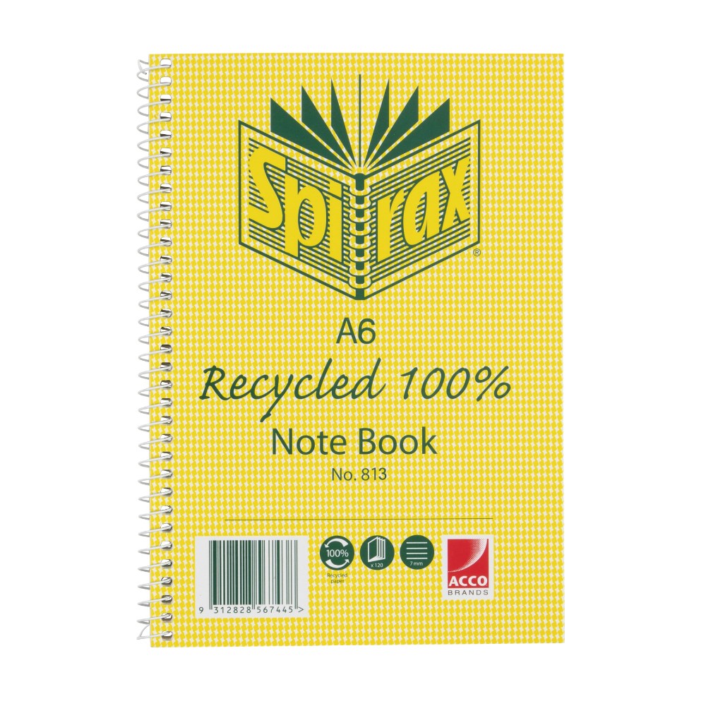 Spirax 813 Notebook Recycled A6 Ruled 100 Page 100% Recycled Side Bound