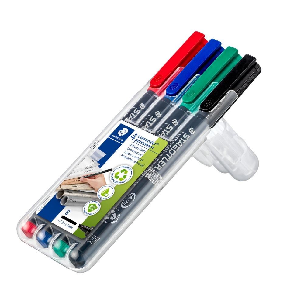 Staedtler 314 Lumocolor Permanent Pens Broad 2.5mm Assorted Colours Wallet Of 4