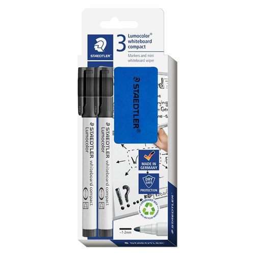 Staedtler 341 Lumocolor Whiteboard Markers Bullet 1-2mm Plus Eraser Black