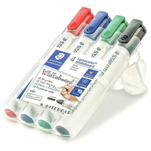 Staedtler 351 Lumocolor Whiteboard Marker Bullet 2mm Assorted Wallet of 4
