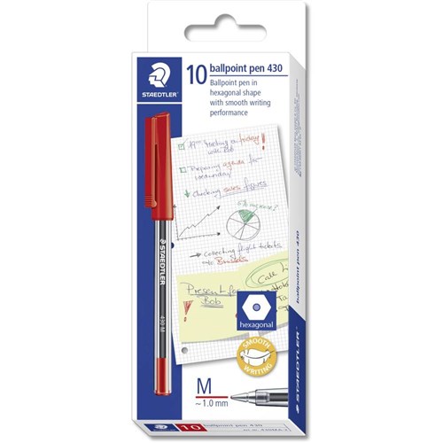 Staedtler 430 Stick Ballpoint Pens Medium 1mm Red