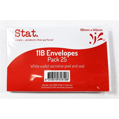 Stat Plain Envelope 11B Secretive White Peel And Seal Pack of 25