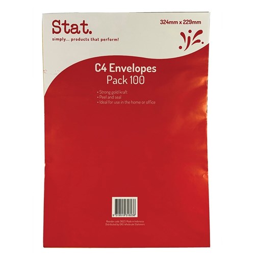 Stat Plain Envelope C4 Heavy Duty Kraft Peel And Seal Pack of 100