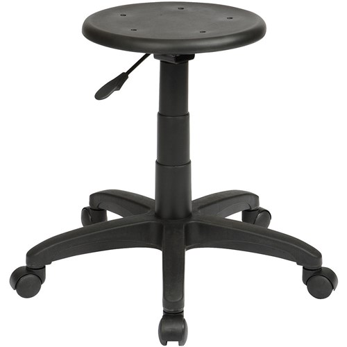 Adjustable seat height. 600mm black nylon base. Black PU seat.