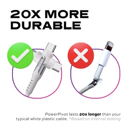 Long rubber cable transition lasts up to 20 x longer than typical plastic cables.