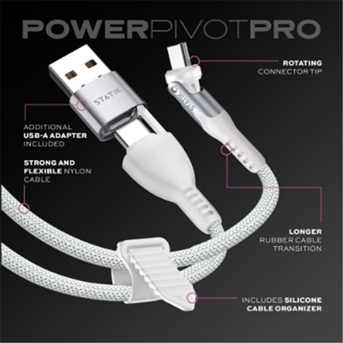 Statik PowerPivot Pro USB-A/C To USB-C Cable 1 Meter Braided White
