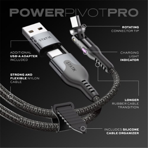 Statik PowerPivot Pro USB-A/C To USB-C Cable 2 Metre Braided Black