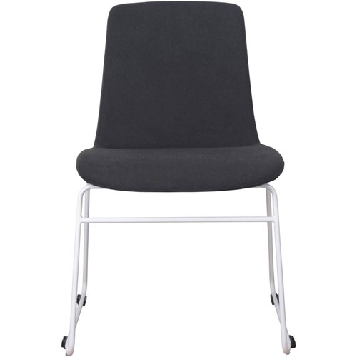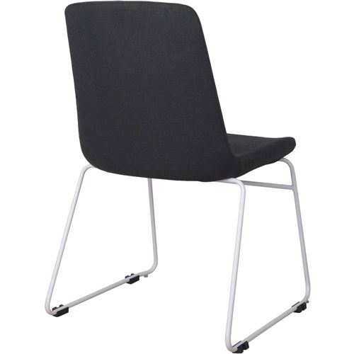 Tempo Visitor Chair White Sled Base Black Padded Fabric Upholstery