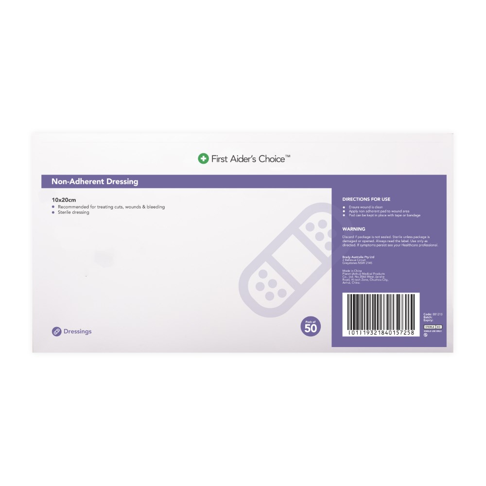 Trafalgar First Aider's Choice Non-Adherent Dressing 10 x 20cm White Box Of 50