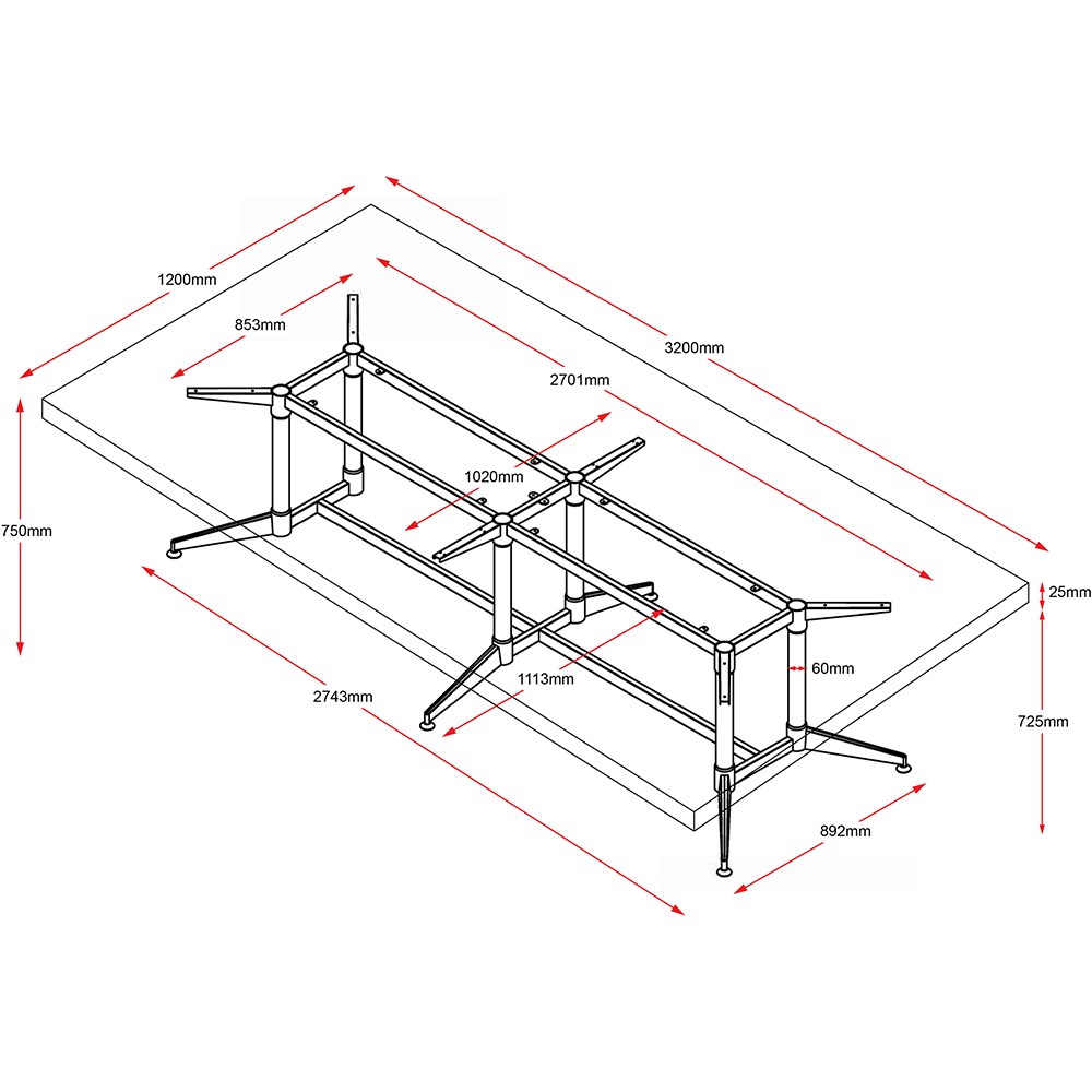 Black powder coated frame and rails and polished aluminium feet with adjustable feet.