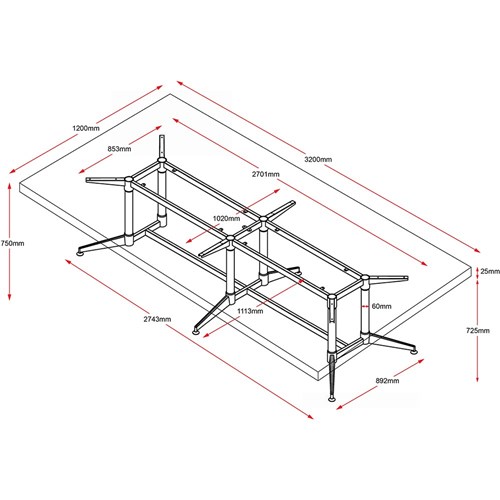Typhoon Boardroom Table 3200W x 1200D White Top Black and Chrome Frame