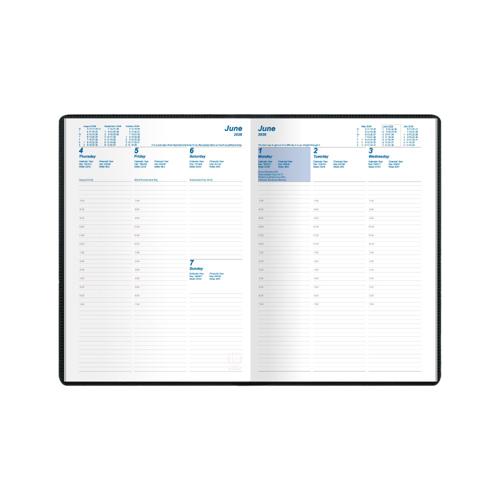 Upward Standard Pocket 148 x 74mm Week To View Black